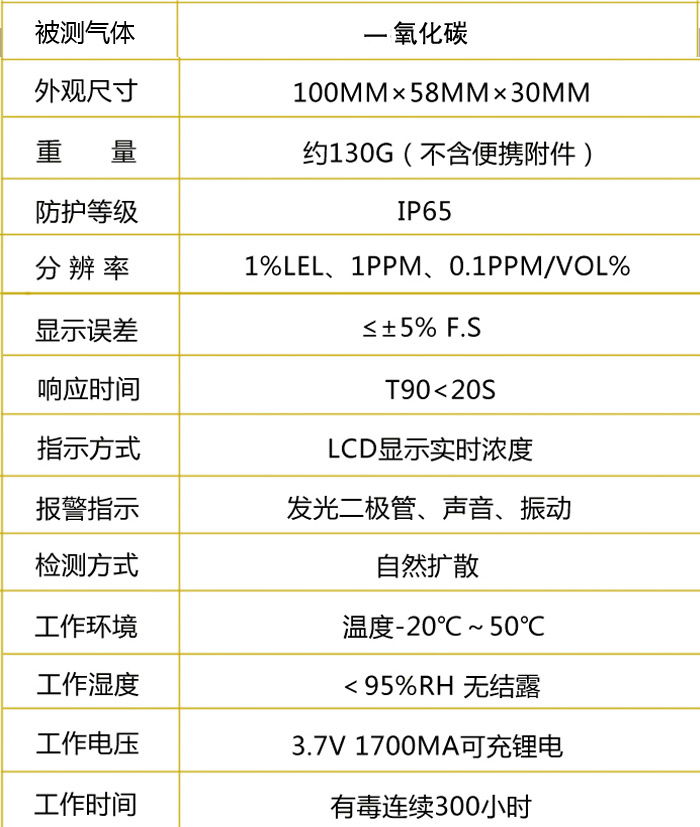 JD-JC1-CO一氧化碳氣體檢測報警儀,是一種可連續(xù)檢測泄漏氣體濃度的本質(zhì)安全性設(shè)備。它適用于防爆場所氣體泄露搶險,化工、冶煉、燃氣、制藥等需要安全檢測有毒有害氣體泄漏的防爆炸防中毒的場所。JD-JC1-EX便攜式氣體探測器采用自然擴散方式檢測氣體,敏感元件采用優(yōu)質(zhì)氣體傳感器,具有極好的靈敏度和出色的重復(fù)性;儀器采用嵌入式微機控制,簡單操作,功能齊全,可靠性高,具有多種自適應(yīng)能力;使用點陣液晶顯示屏,直觀清晰;小巧美觀的便攜設(shè)計不僅使您愛不釋手更便于您移動使用。便攜式氣體探測器外殼采用高強度工程塑料,復(fù)合防滑橡膠而成,強度高,手感好,并且防水、防塵、防爆。