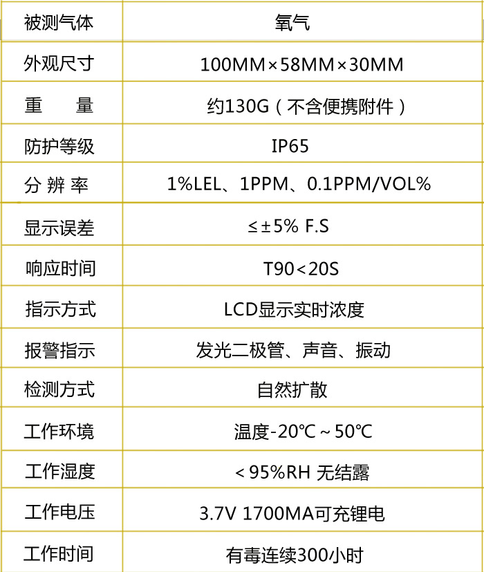 氣體檢測(cè)儀規(guī)格參數(shù):