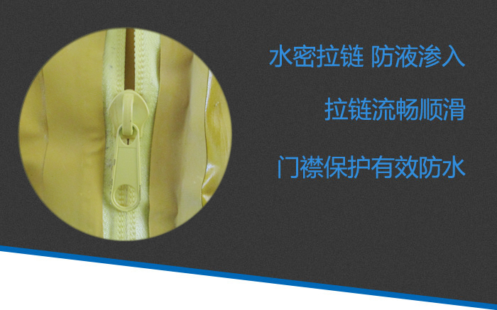 1. 高密閉性水密拉鏈 門襟保護(hù) 尼龍搭扣粘連 提供高端雙層防護(hù) 確保化學(xué)液體不滲透 拉鏈流暢順滑 手感舒適