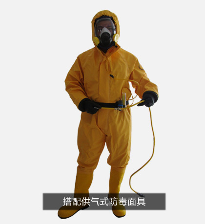3.穿防化服需要另外一個人在旁協(xié)助并檢查是否穿戴完好,最好準備一個凳子以方便穿戴。