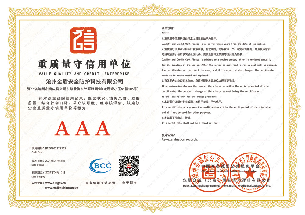 滄州金盾安全防護(hù)科技有限公司 電話:0317-8616698 郵箱:2277468668@qq.com 全國(guó)服務(wù)熱線:400-888-7543 地址:河北省滄州市南皮縣城市國(guó)際